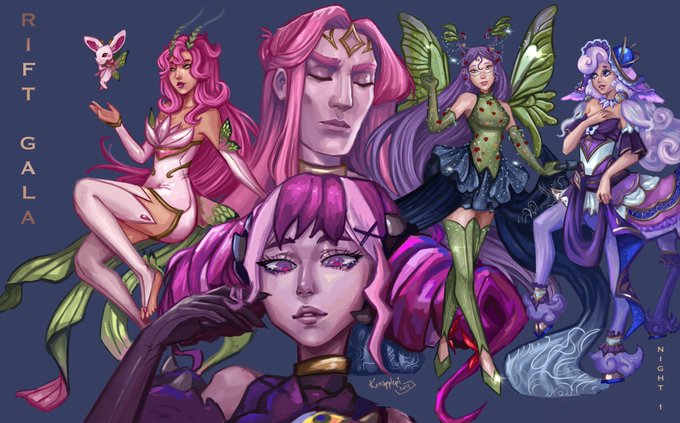 Fanart of some of my favorites from @riftgala 's first night! ✨Credit for concepts to: @sonaissm (sera), @yeorinart (taric), @cellorino (kaisa), @Gyzra (lillia) and @_momobucket (gwen) #LeagueOfLegends #ArtofLegends #RiftGala