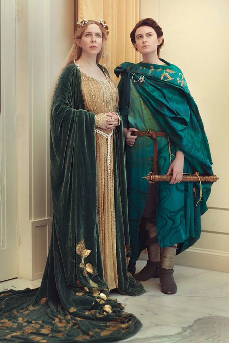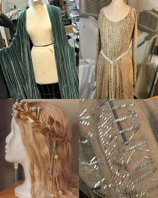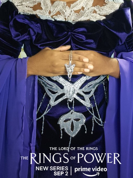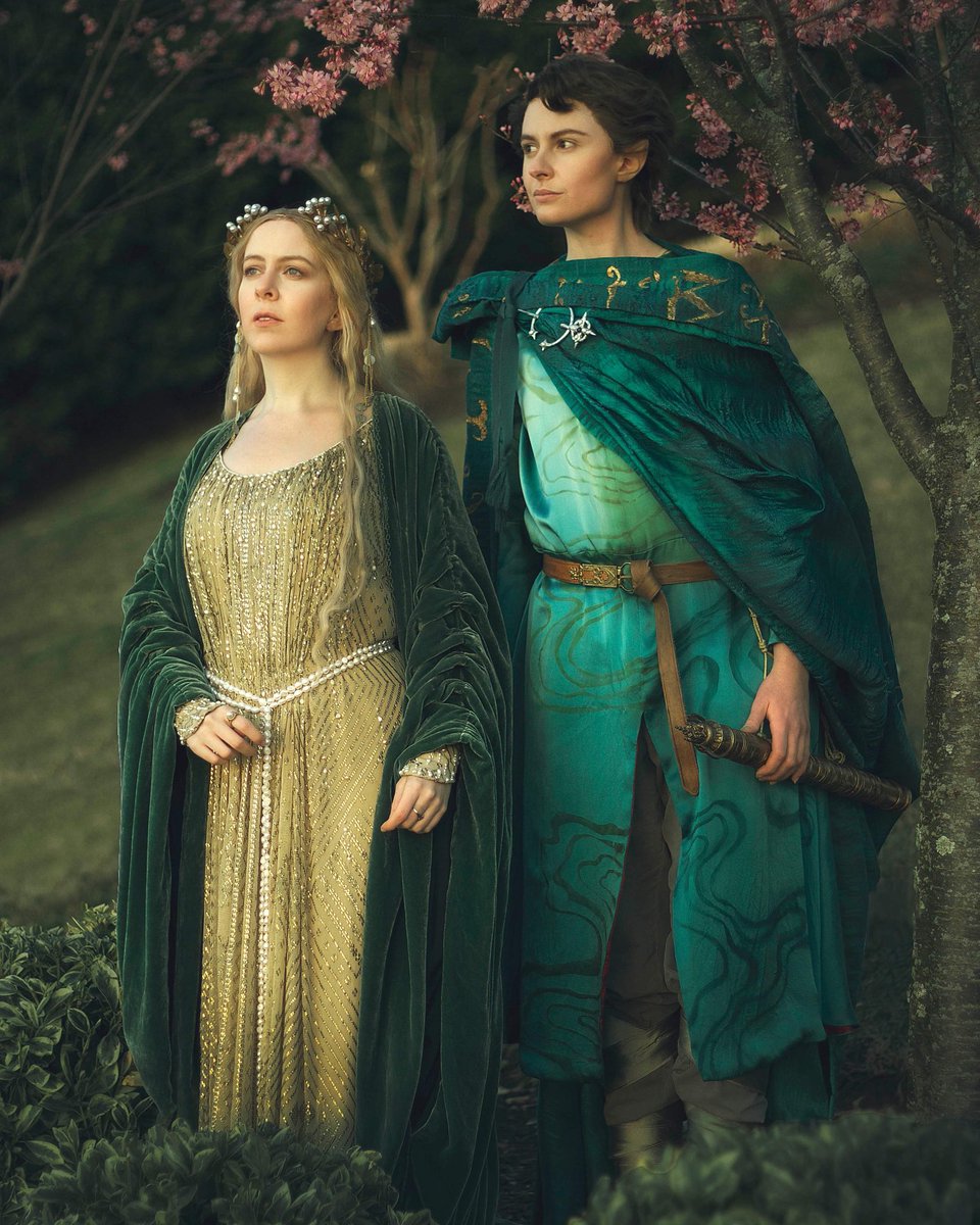 Bringing these costumes together after working on them for half a year in two different countries—just magical. We put so much into these and I am still in awe at seeing Tilda’s work in person! #RingsofPower #Tolkien #Lotr @LOTRonPrime Elrond - @woodsmokewords Galadriel- me