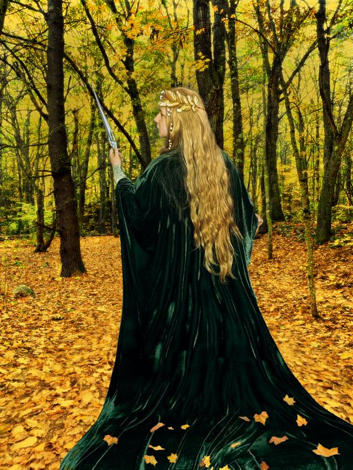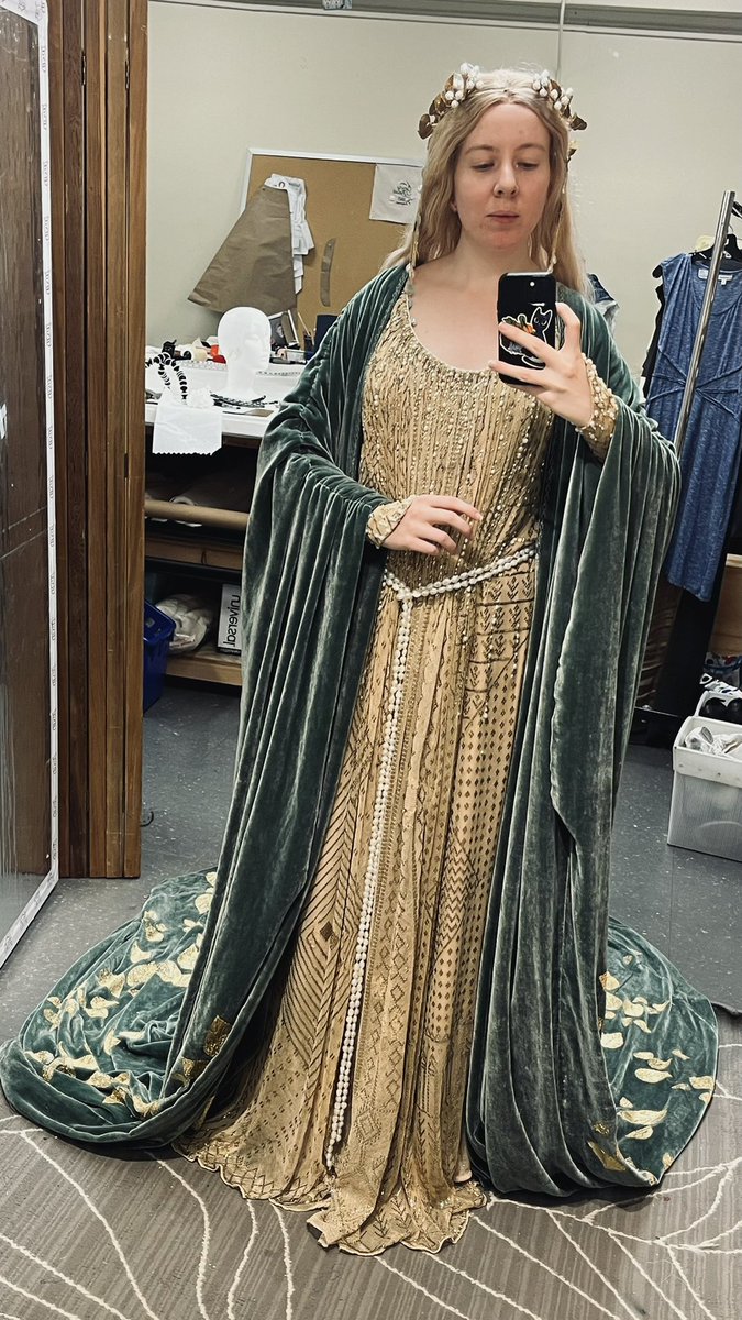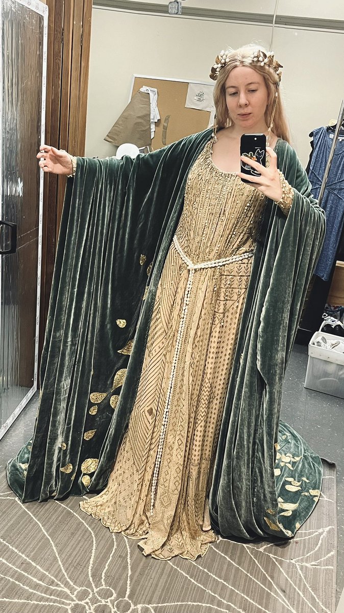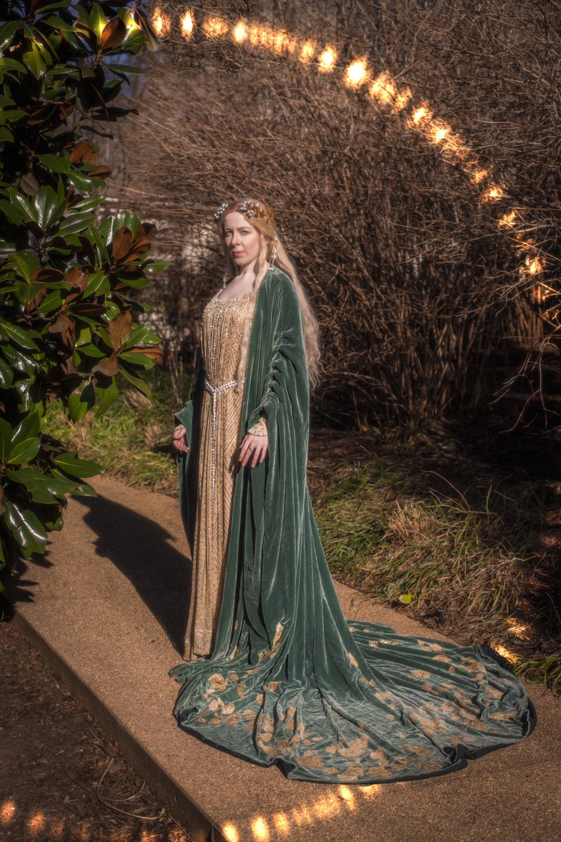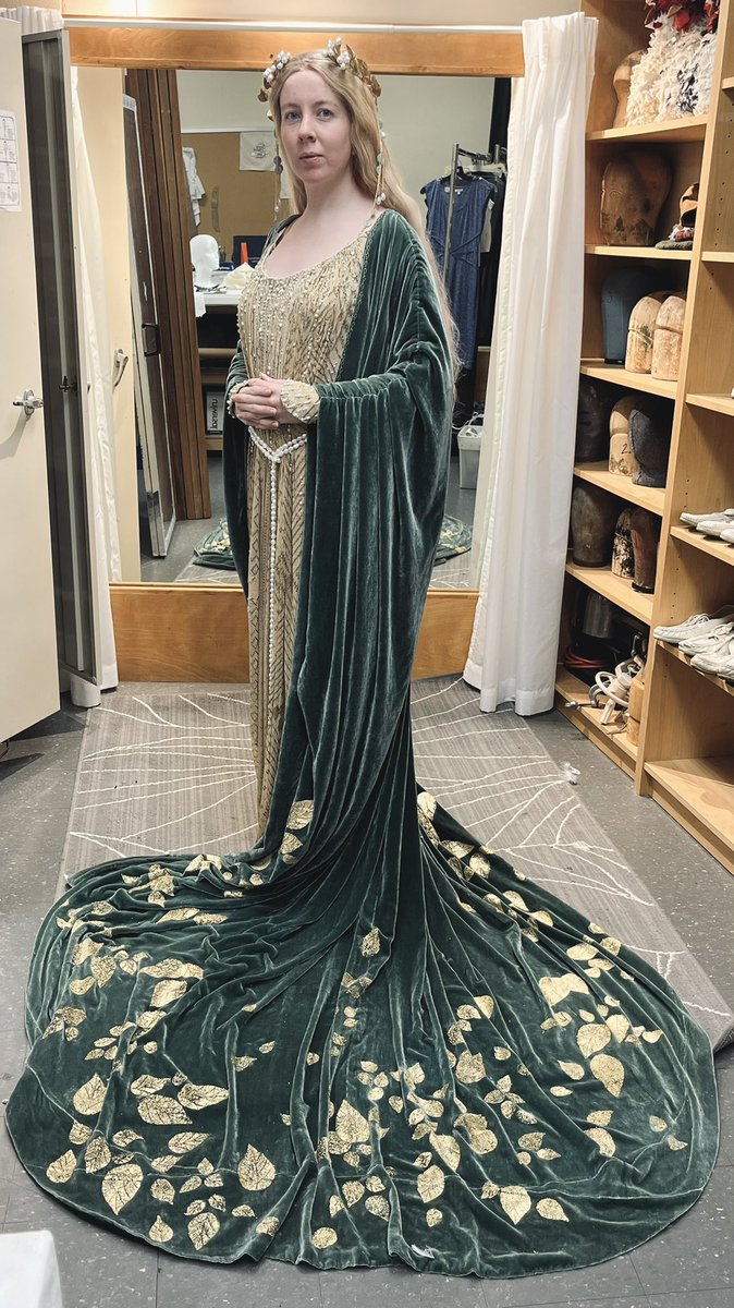 Galadriel’s silk velvet robe in all her glory! It was so much time and so worth the pains—I felt like a painting whilst wearing this! #LOTR #Tolkien #RingsOfPower @LOTRonPrime @WetaWorkshop Photo by @honeyheather_