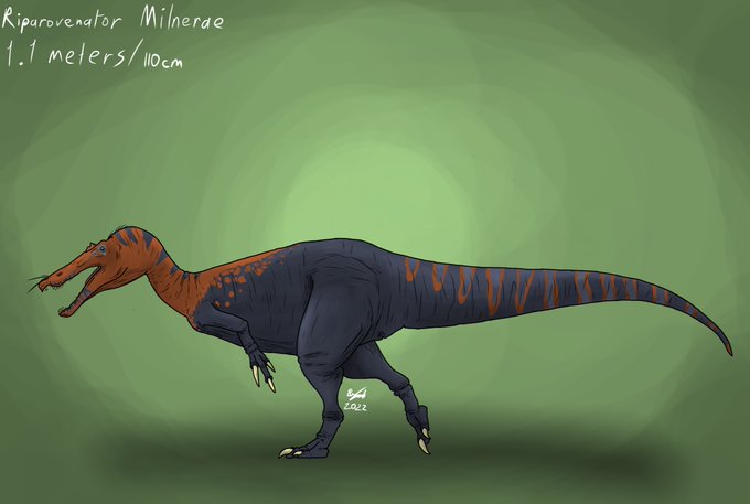 Riparovenator milnerae was named and described by a team of paleontologists including Chris Barker, Darren Naish, David Hone and others. The specific name honors Angela Milner. tetzoo.com/blog/2021/9/27…… #riparovenator #zbrush #paleoart #dinosaur #blender #paleontology