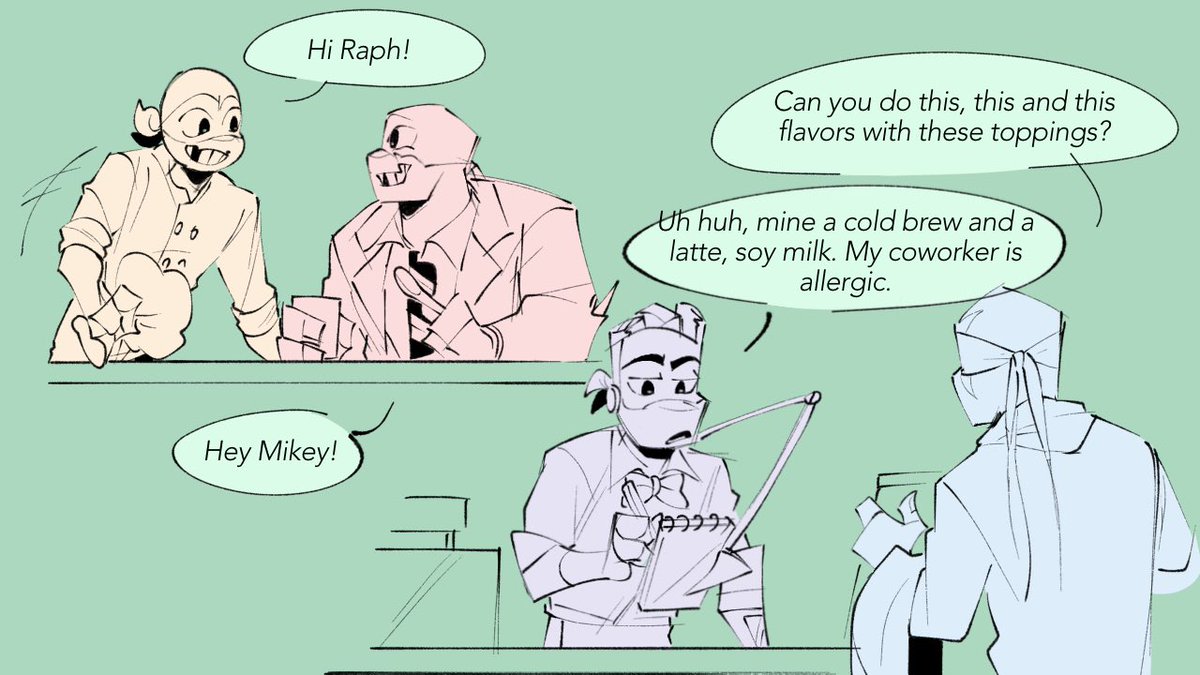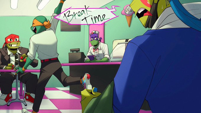 They would go to each other’s jobs just to mildly annoy one another #RiseMinimumWageAu #rottmnt #SaveRiseoftheTMNT