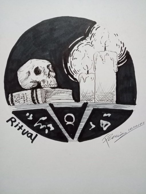 Dia 16,Ritual, pero recuerden, si lastimar animales. @LeyendasPodcast #TintubreLegendario2022 #leyendaslegendarias #Ritual #Inktober #dibujo