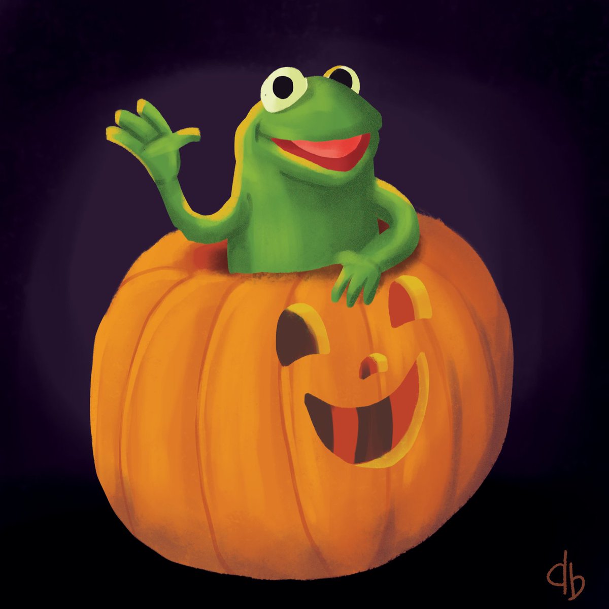 🎃Happy October 1st! It's time to get things started in the most spooktacular, phantasmagorical, muppetational month of the year! #themuppets #robinthefrog #halloween #Pumpkin #illustration #MuppetsHauntedMansion