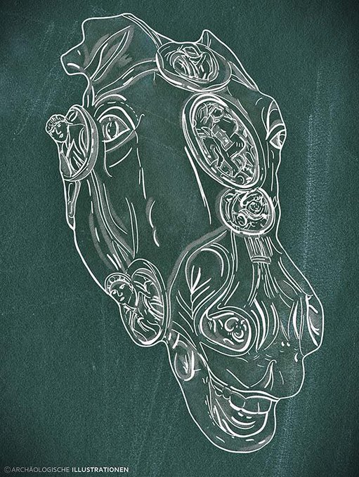 The life-size horse head from Waldgirmes is made of bronze, gold-plated, weight 15kg. The horse's head belonged to an equestrian statue, it probably showed Emperor Augustus. The statue was destroyed after the Varus Battle in 9/10AD. #Roman #illustrationoftheday [Fig. ArchIllu]