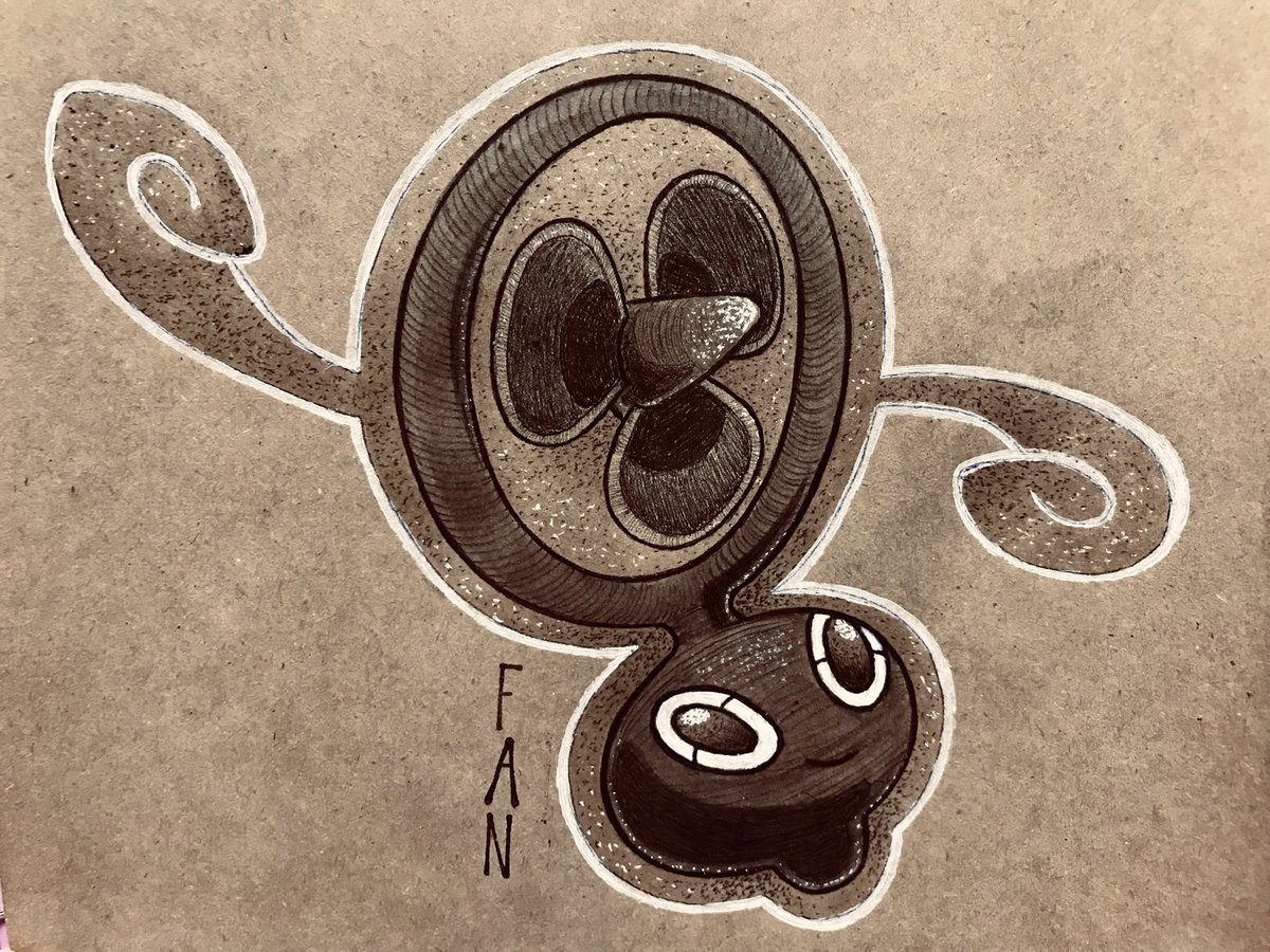 Inktober 2021: Day 7 - "Fan" Keeping it simple today with the first thing that popped in my head for "Fan". Rotom is such a quirky Pokémon. lol #inktober2021 #pokemon #rotom
