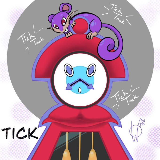 Rattata runs up the clock. I really got stuck for the prompt tick. This was the best I could come up with. #inktober #inktober2021 #tick #poketober #pokemon #rotom #rattata #clock