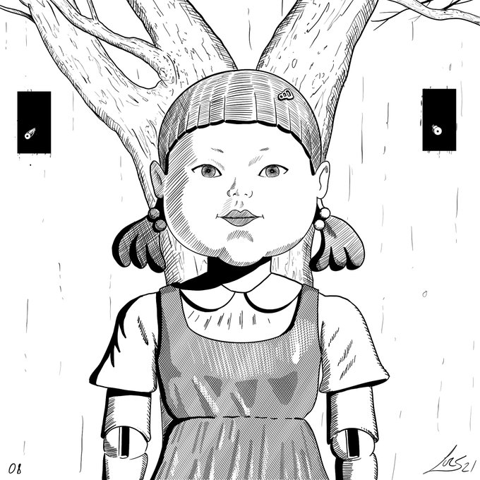 Lua / Moon - nr 18. Baseado numa cena de Round 6. #inkbr #inkbr2021 #inktoberbrasil #inktoberbrasil2021 #inktober #inktober2021 #halloween #Round6 #SquidGame #SquidGames