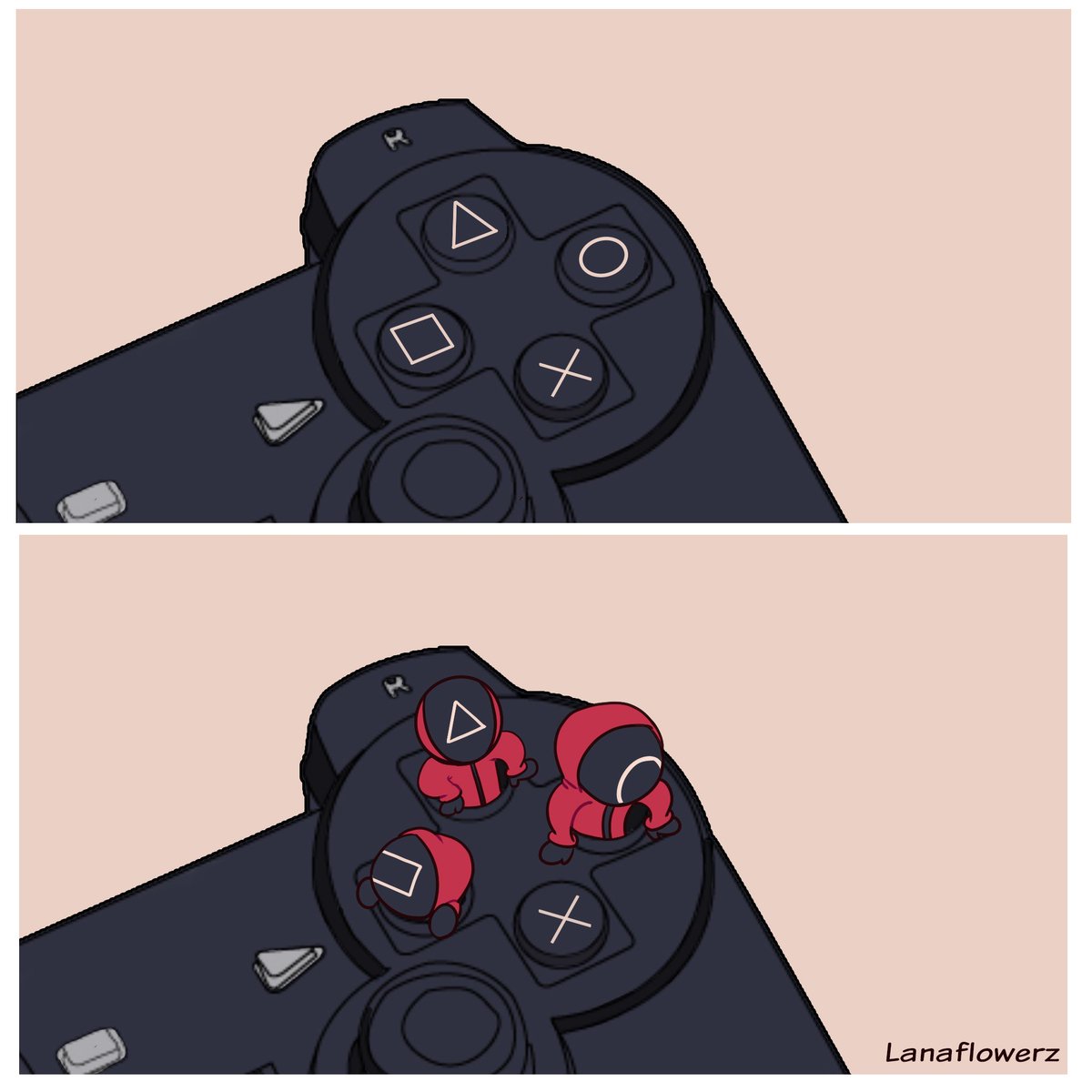 "Hmm... Kinda sus... Maybe he's a Sony fanboy?" 🔼✖️⭕🔳 #SquidGames #squidgamefanart #fanart #anime #Round6 #digitalart #PlayStation #netflix #squidgamenetflix #inktober2021