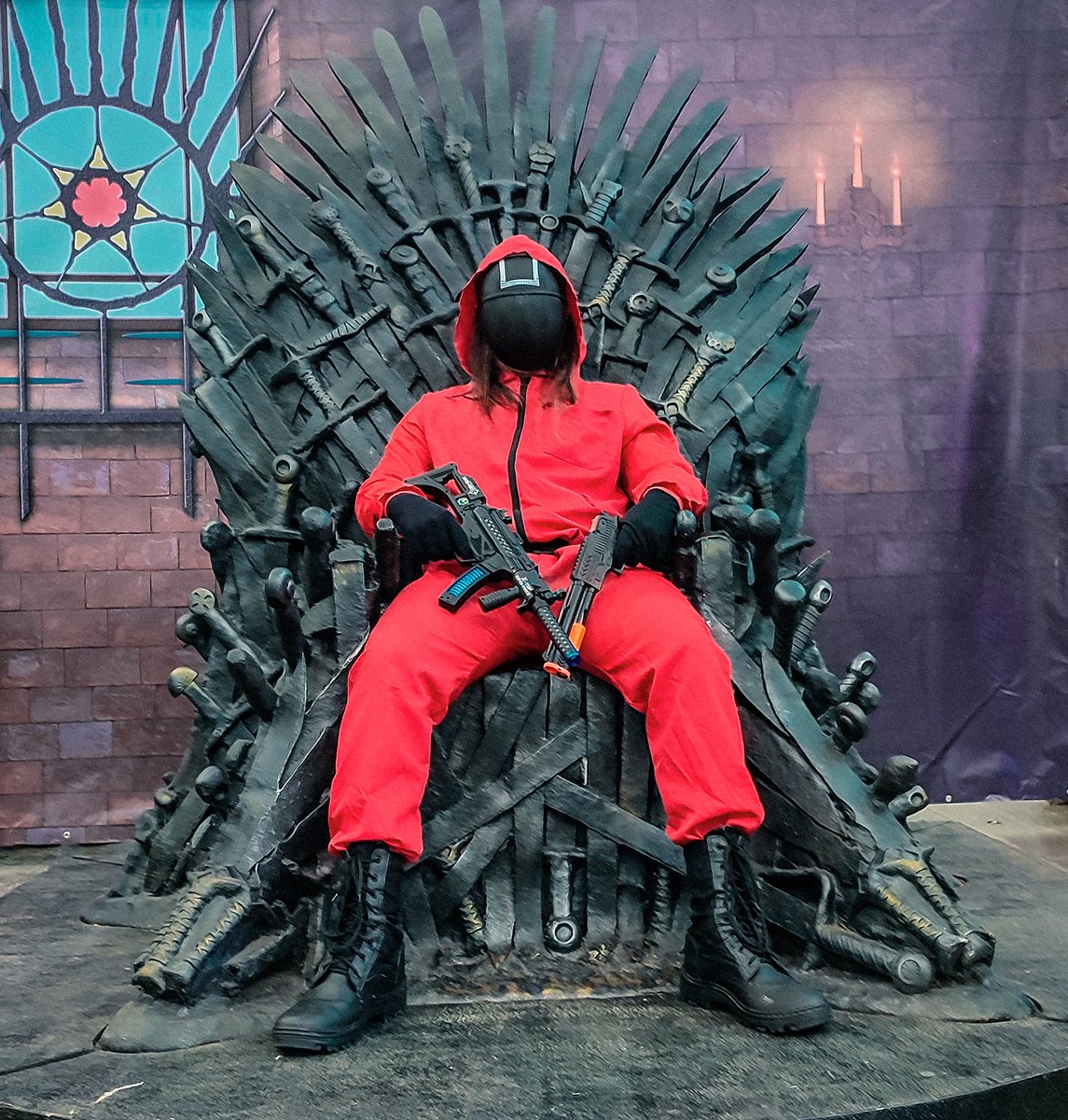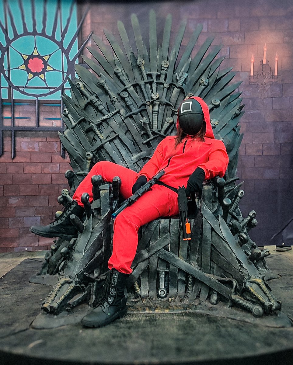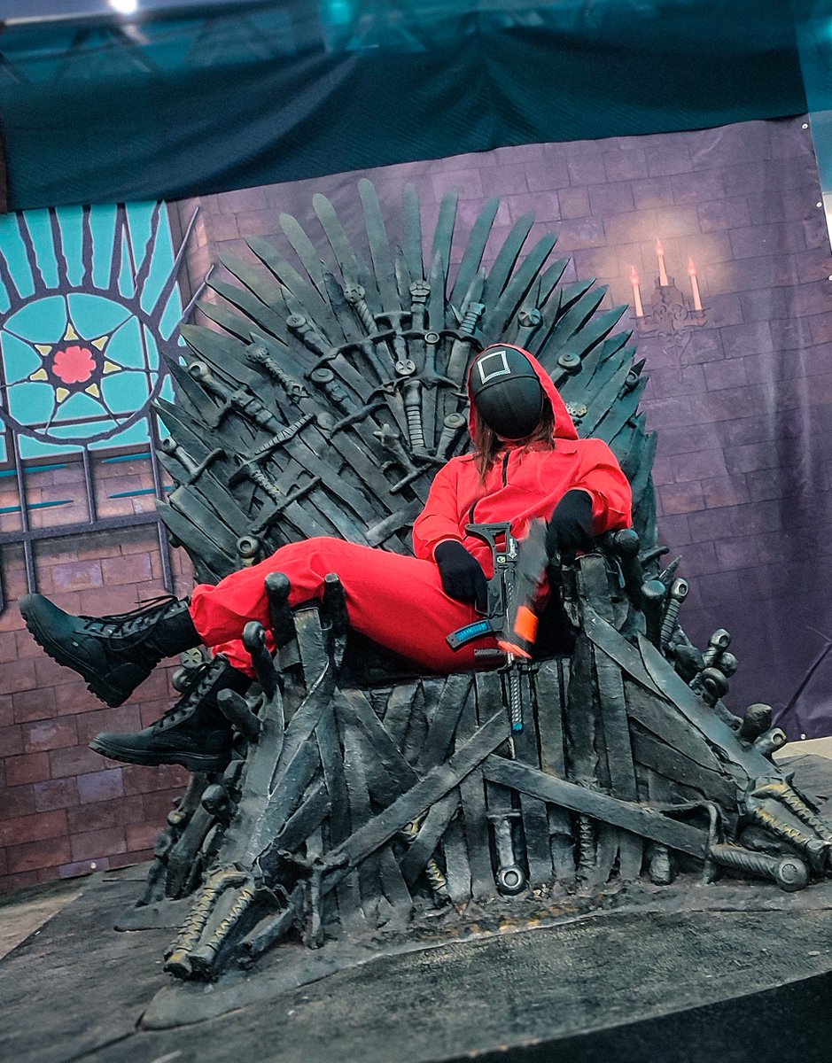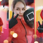 Sou a nova infiltrada 😌 Dei sorte de pegar a máscara de quem é responsável pela supervisão 😏🔳 #SquidGame #Round6 #Netflix #fabifairy #cosplay #BoaNoite 🧚🏻♀️🇧🇷💜