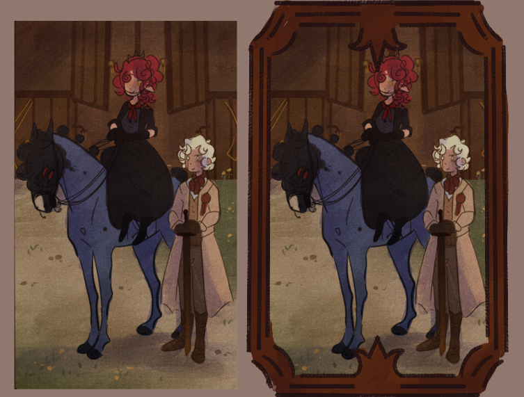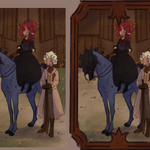 Some care for Crimson, he is a good demon horse. This is from my Royal au, Aziraphale and Muriel (his adopted Daughter here) Request: @blazenfire223 --- #GoodOmens #aziraphale #GoodOmensFanArt #Muriel #Royalau