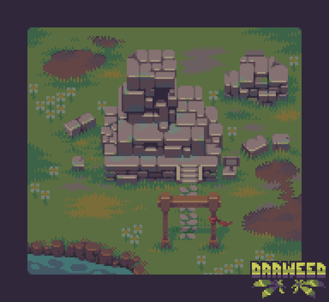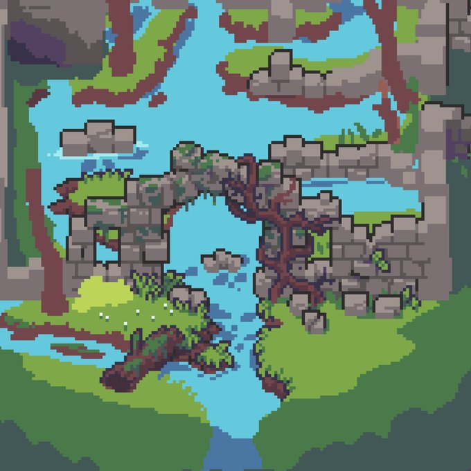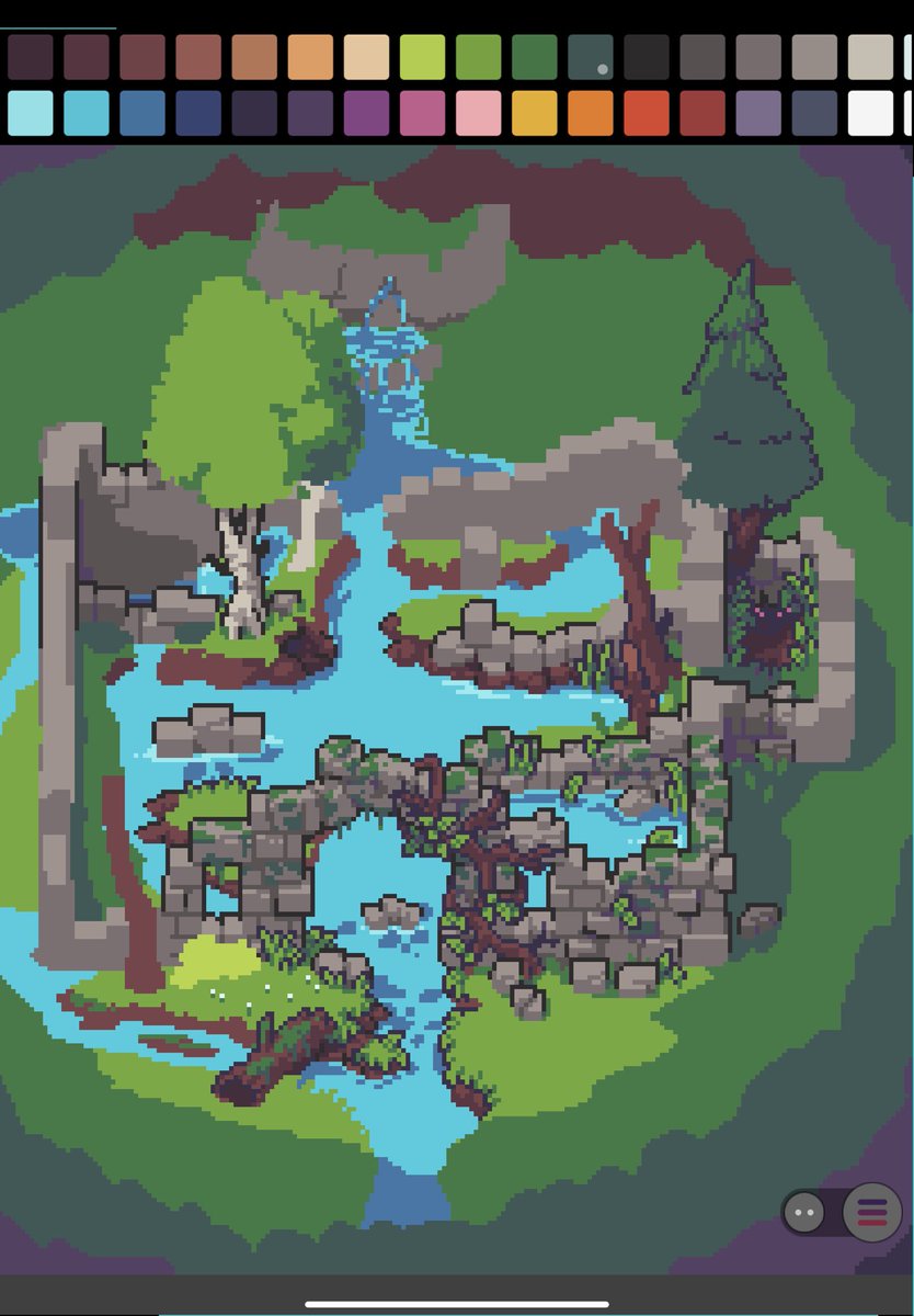 No #lunchtime update today, so here is a full view of the area. There’s still a lot to work on, but it’s getting there 🪄 #pixelart #ruins
