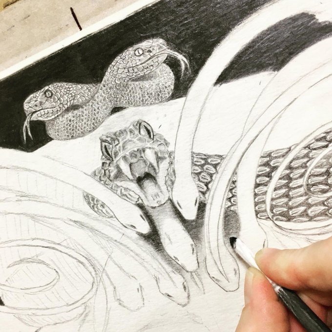 Started filling in more of the snakes. Drawing this is soothing for my mind. #StreamlineSurgical #Snakes #Serpents #GorgonMedusa #GeneralManager #Demon #AdministrativeVipers #ForkedTongue #SecretsAndLies #RulesAndRegulations #RedTape #FaceOfEvil #Cunning #DarkArt #TattooArt #Art