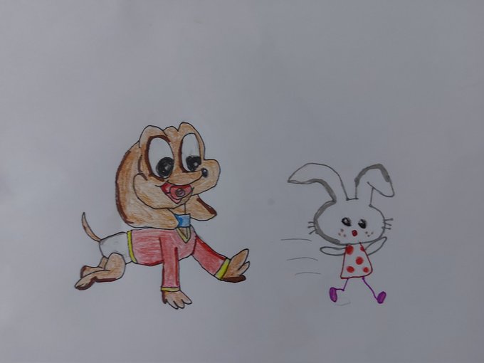 @inktober day 2: scurry frankie as a baby has chase over honey no matter where you going. #inktober #inktober2022 #inktoberscurry #jumpstart #moshimonsters #baby #dog #crawlingbaby #running #rabbit