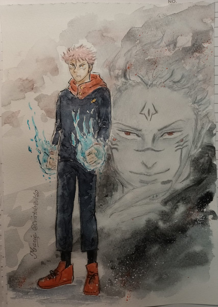 呪いの王・両面宿儺 若き日々 *想像です。原作で見たい... #呪術廻戦ファンアート #jjk #jjkfanart #ryoumensukuna #水彩イラスト #絵描きさんと繋がりたい #イラスト好きさんと繋がりたい