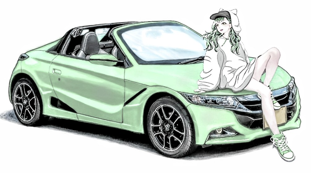 車と女の子(s660ちゃん)がほぼ完成!残るは背景φ(..)カキカキ...本日もお疲れ様でした┏○ペコッ #企業公式がお疲れ様を言い合う #相互フォロー #絵描きさんと繋がりたい #イラスト #s660 #タイヤ屋のお絵描き