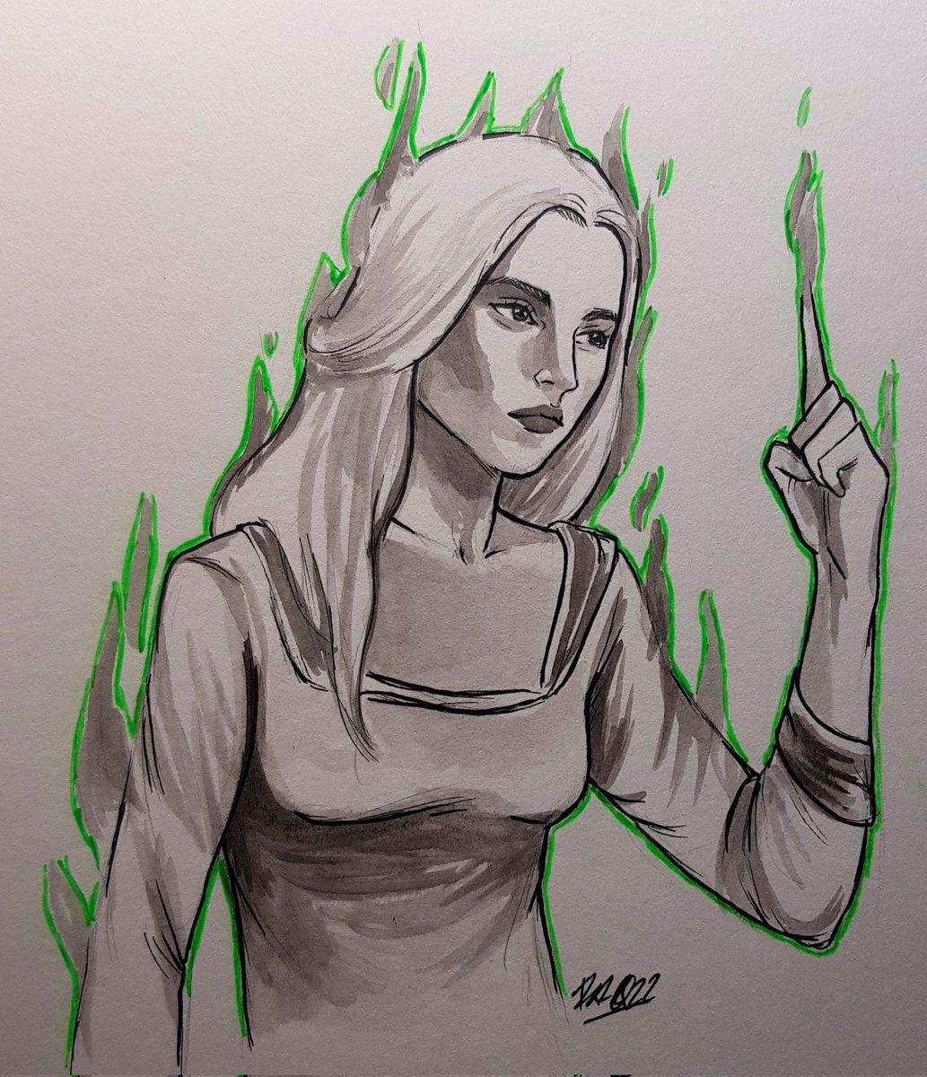 12/31 Нада - у минулому лідерка перших людей та колишня кохана Морфея, яку за його проханням Люцифер ув'язнила у пеклі, через зраду дівчини. #inktober2022 #sandtober #TheSandman