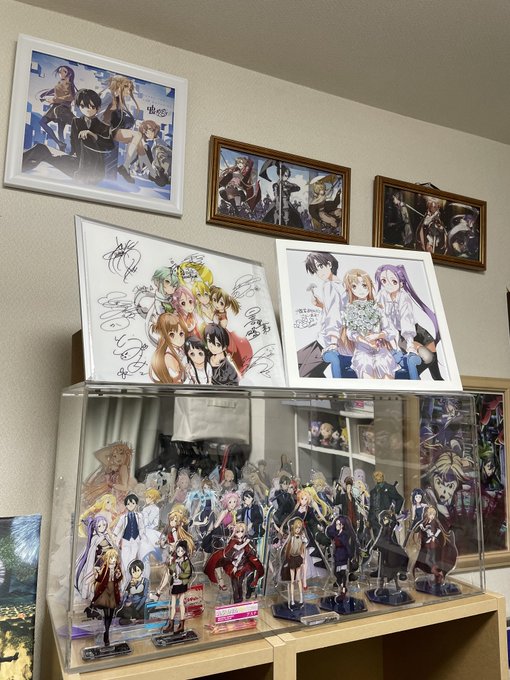 #sao_anime #SAO10th #ソードアート・オンライン abec先生の色紙特典を早速飾りました♪ また、お気に入りの癒し空間に1つ 増えた♪ 右とブラウンで合わせるか迷ったけど、 白が合ってたので、額縁の色は白にしました(*´ω`*)