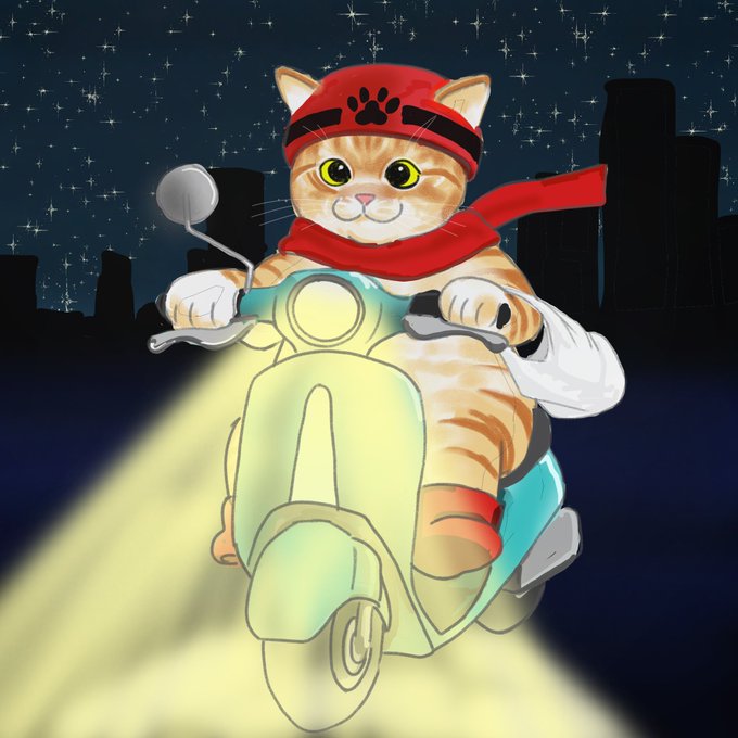 More stuff with Canti, featuring cat and vespa #flcl #foolycooly #anime #manga #fanart #canti #robot #tvboy #cat #vespa #scooter #vespasupersport180 #dramatic #blackcat #haruharaharuko #digitalart