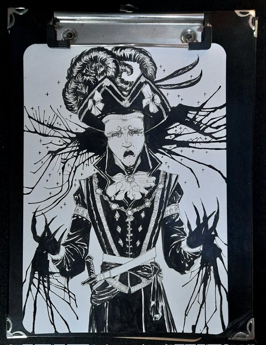 The four masked Lords of Alagadda, eldritch beings, whose reason for existence is to serve the Hanged King... Testing on drawing my version of the Black Lord! #SCP #SCPFoundation #scpfanart #scp035 #scpart #scp2264 #alagadda