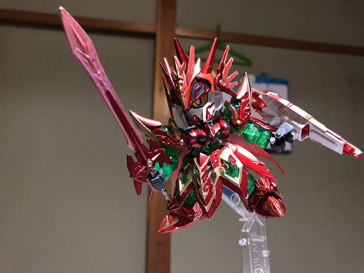 隼アストレイ 完成! 孫策アストレイが武を極め 四獣王・隼を継承した姿 青隼の再現のために 軽装形態への改造が大変でした 羽はプラ板自作です 自作台座&エフェクト羽はブラックライトで光ります スレに続く #SDガンダム #SDガンダムワールドヒーローズ #ガンプラ #ガンプラ好きと繋がりたい