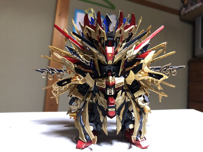 10歳の娘が昨年のXmasから少しずつ進めてようやく出来上がりました✨ 司馬懿デスティニーガンダム、完成です☺️ 下地の金塗装とトップコート以外、父ちゃんはひたすら口だけで手は出してません🤐 がんばったので皆さん見てあげてください🤣✨ #SDガンダムワールドヒーローズ #十路モデラー
