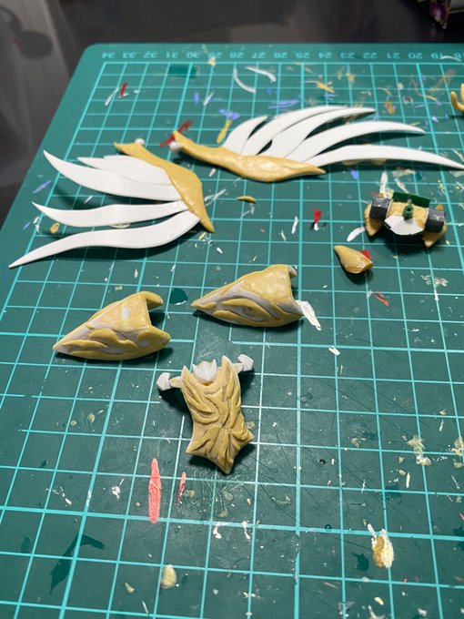 フェニックスのクシャトリア 構想中 軽装形態は聖衣装着の嵌合以外をパテで埋めるとして、 胸パーツは黄色箇所削った上にパーツ作成も難しい。 あとは腕、膝アーマー検討し、オブジェ形態を模索。 #SDガンダム #SDガンダムワールドヒーローズ #ガンプラ好きと繋がりたい #ガンプラ #制作過程