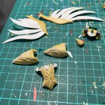 今日の模活 パテのみ これだけで1時間半かかってます。 不死鳥=炎のイメージで肩アーマに模様 前腰には不死鳥シルエットをイメージ なお、こっからの整形も大変 #SDガンダム #SDガンダムワールドヒーローズ #ガンプラ好きと繋がりたい #ガンプラ #制作過程