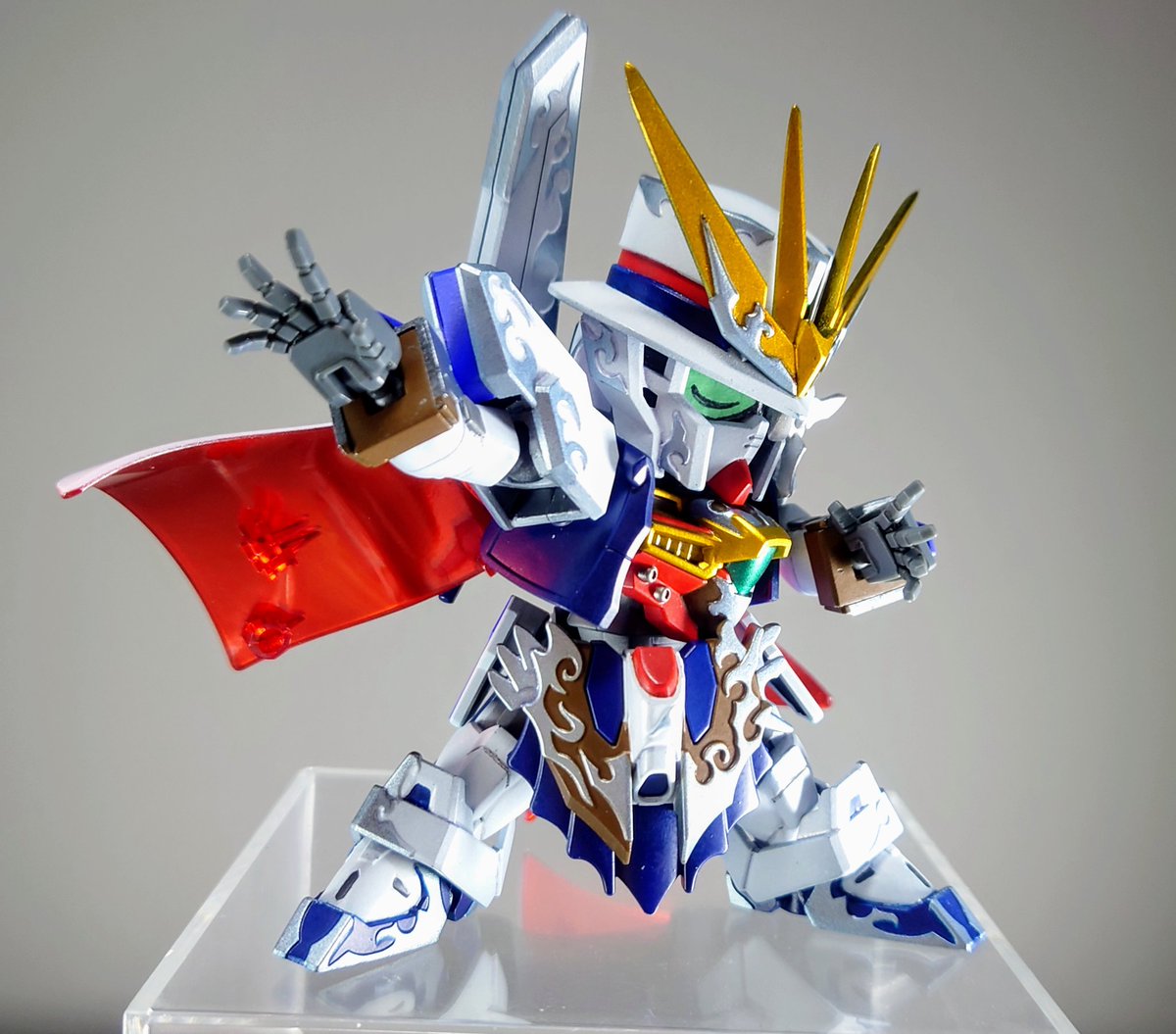 約束しただろ! お前の正義の心を取り戻す!! 『龍尊劉備ユニコーンガンダム』完成しました! クリアパーツ版劉備ユニコーンのパーツをミキシングし豪華絢爛なイメージで制作! また、塗装はアシンメトリーにして単調にならないように仕上げてみました! #ガンプラ #SDガンダムワールドヒーローズ