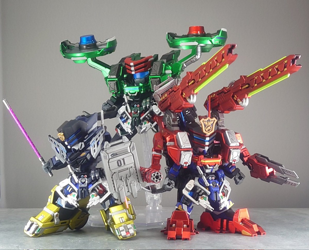 『スペリオルフォーミュラーファイナルドラゴン』完成しました! 四肢を広げてハッタリの効いたポーズが取れるように改造! 手持ち武器も用意してみました! 全体のメタリックを吹いた後、細かい箇所は全て筆塗りで仕上げています! #ガンプラ #SDガンダムワールドヒーローズ #困難フィニッシュ