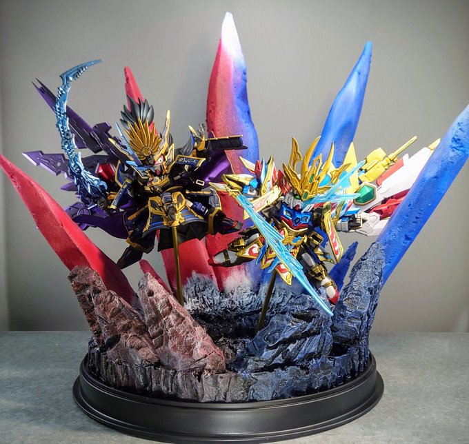 『王の激突』完成しました! 以前、GBCJ向けに制作した信長エピオンと曹操ウイングを、GBWC用に再作成しました! 全身に渡り再改修を行い、コンテスト「映え」を目的に大型のディスプレイベースも作成してみました! #ガンプラ #SDガンダムワールドヒーローズ