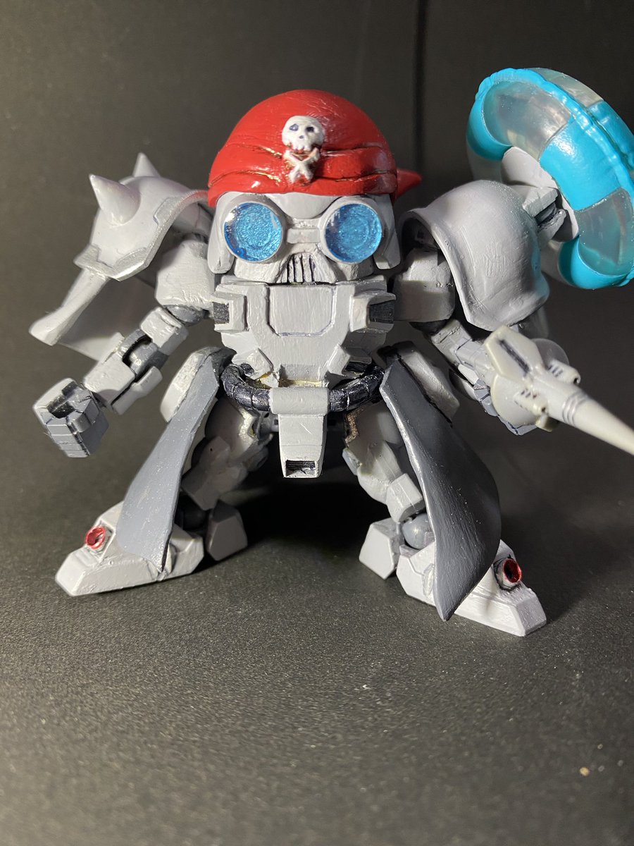 『ジェミナス・紅蓮(グレン)』 完成しました! 秘宝「イワイノヨロイ」に選ばれたジェミナスは、シン・ライナーオフェンスブースターによる高速戦闘にて大海を駆け抜けるのだ!! #SDガンダム海賊イチ味 #ガンプラ