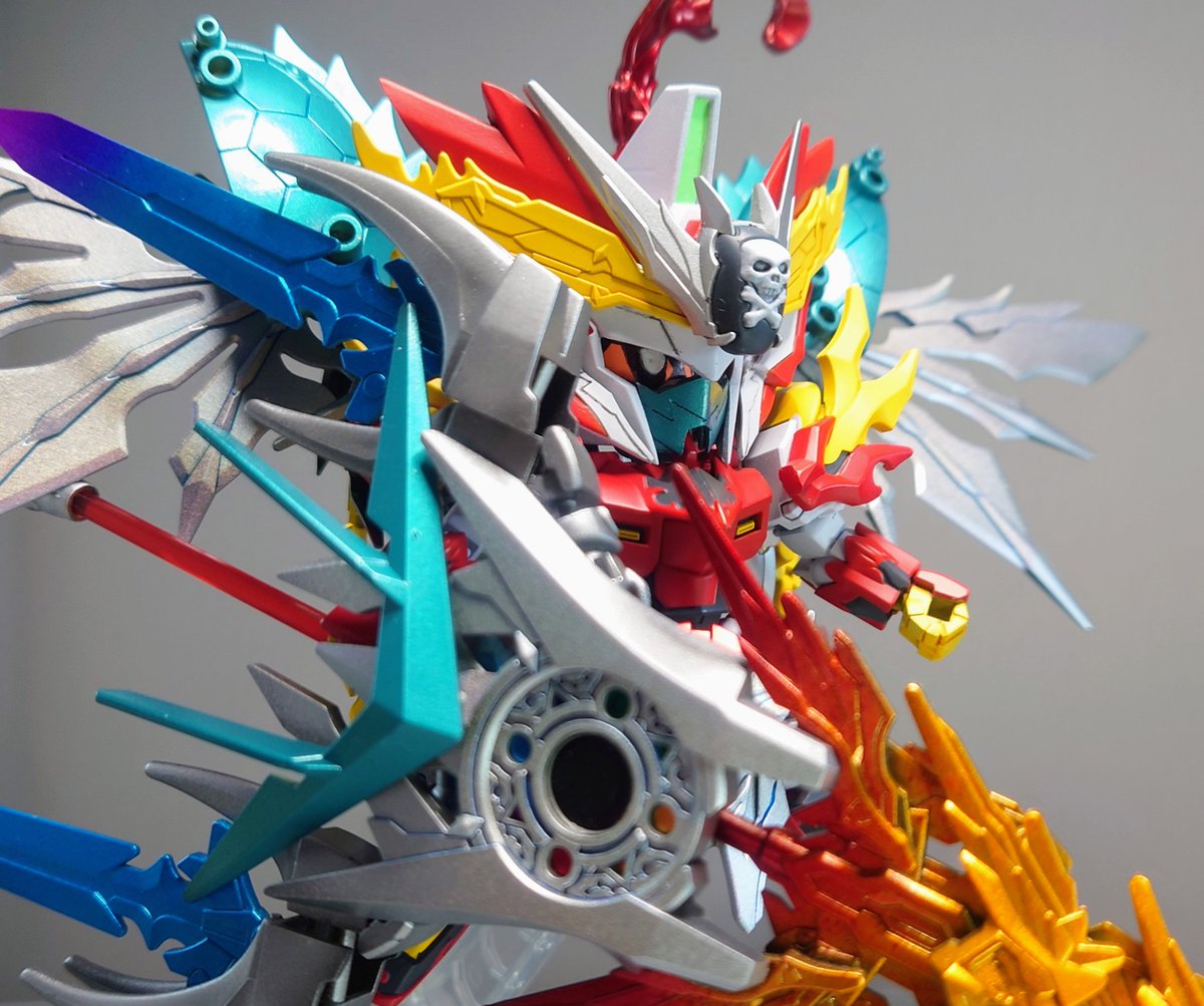 『ジェミナス1+2・極彩(テラオーガ)』 完成しました! 「ゼロの秘宝」を手にしたジェミナスが得た究極のチカラ!! 兄であるアスクレプオスの蒼き炎も受け継ぎ、暗黒の海に蠢く闇を全て薙ぎ払う!!! #SDガンダム海賊イチ味 #ガンプラ