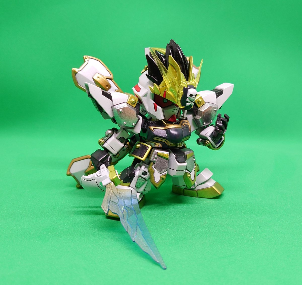 『アスクレプオス・蒼(ソウ)』 完成しました! 秘宝「ノロイノヨロイ」に選ばれたジェミナスの兄! 暗黒剣「無念のツルギ」は海の藻屑となった命(プラーナ)を炎に宿して放つ!! #SDガンダム海賊イチ味 #ガンプラ