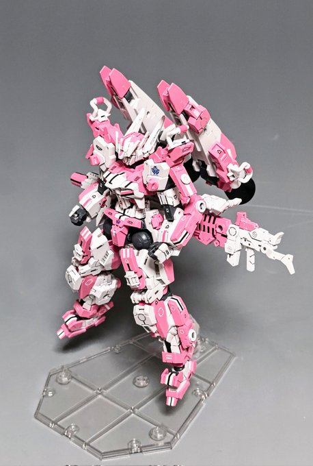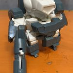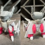 #マクロスモデラーズ SDミリア市長機完成しました。 ガウォーク形体での鳥脚を優先して股関節を二重関節化。肘関節追加。手首を丸指化。ガンポッドは1/144付属の物を短縮して持たせました。 先に作ったミレーヌ機同様、変形時に余る頭に小さい胴体を付けました。 #SDマクロス
