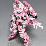 #マクロスモデラーズ製作 額のセンサー部をUVレジンでコーティング。 肩のカナード翼にFire Bomberを書き入れました。漫画ダイナマイト7ミレーヌビートを参考にしています。 #SDマクロス