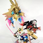 【作品名 】葬星破戒神 天喰零壱 Twitter模型企画 #SD戦国異説 のラスボスキャラとして制作しました。 その正体は正史から逸れた「異」なる「説」話の武者頑駄無零壱で、星々の力と十四の結晶を束ねて顕現した混沌鳳凰と融合する事により「天」を「喰」らう神と成った。 #KSD祭ONLINE #KSD武者
