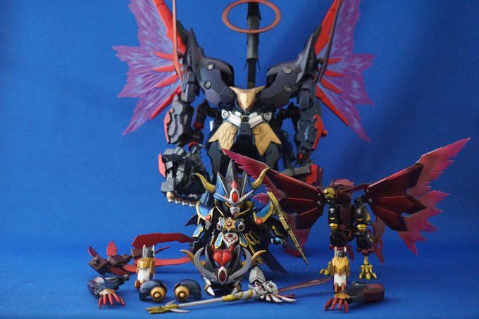 #SDガンダムの日 ダークマスクコマンダー デスウイングゼロ 5人の技師によりウイング デスサイズ ヘビーアームズ サンドロック シェンロンの5体の性能をフィードバックされたSD戦士 #SD黙示録 において、光焔の色彩のひとつを受け継いだ 冥闇 ノ ウイングゼロである #7人のマスクコマンダー twitter.com/shironiji777/s…