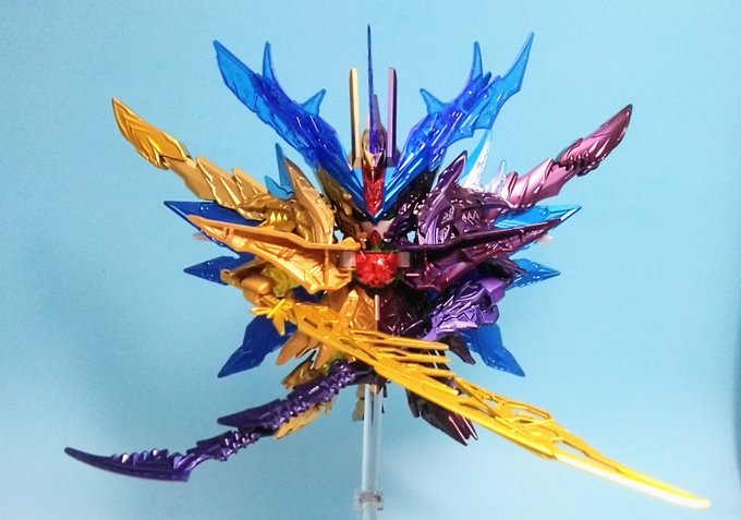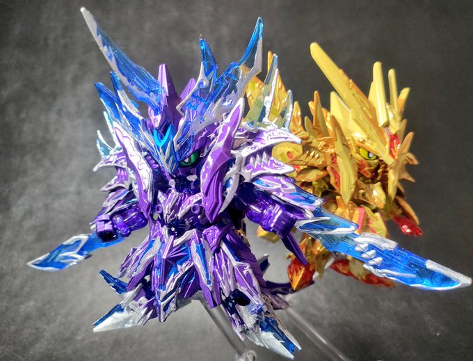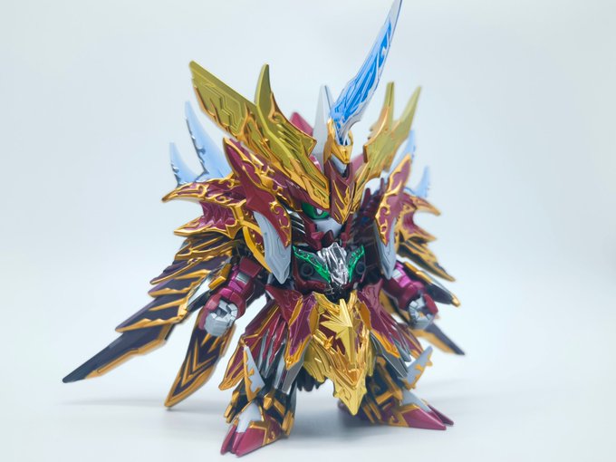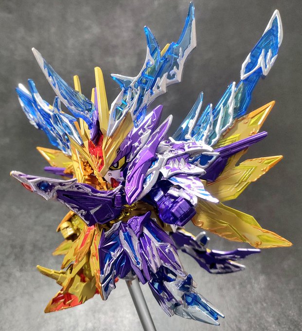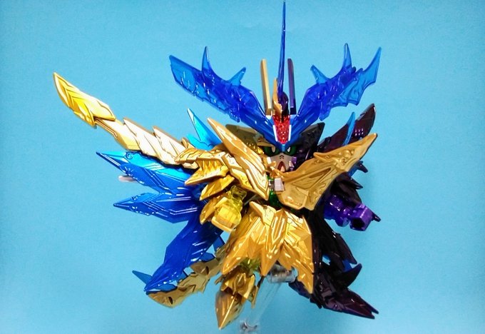 (1/5) #オルタナティブジャスティスインフィニットドラゴン 完成です とにかく塗装がきつかったです。雑塗装だけど、目線差分もつくったから許して ファイナルでフォーミュラーなやつもリプにあります(リプ続↓ #ガンプラ #ガンプラの画像貼るとRTされると聞いて #SDGW_DK #俺SD作ってるぜ #SDガンダム