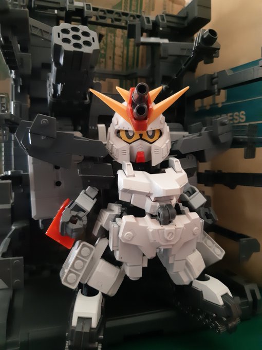 #SD_ΖΖガンダム祭り SDガンダムトライオン3完成しました。 HGトライオンをベースにしてます。 頭部はSDCS陸戦型ガンダムとパテとプラ板でできてます。 キットをくださったRyouiさんに感謝感謝です!!