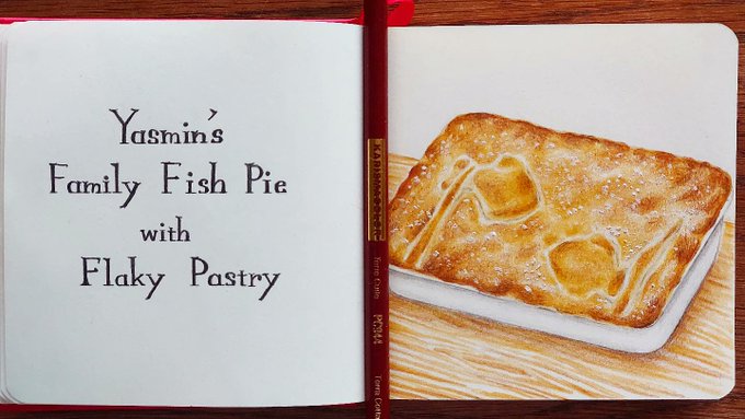 ヤスミンの魚のパイ🐟✨ ベイカーは7人になり、パイウィークです🥧 オリジナルチャレンジの課題はポットパイ🍀 生地はラフパフかフレーキーペイストリーで制限時間は2時間半です🕛 #ブリティッシュベイクオフ #TheGreatBritishBakeOff #season2 #色鉛筆 #イラスト #illustration #pie #パイ