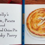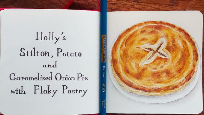 ホリーのチーズ、ジャガイモ、タマネギのパイ🥔🧀🧅✨ 真ん中がこんもり盛り上がっていて見た目もとても美味しそうでした🤤お肉やお魚が入ってないのに大絶賛されるなんて凄いですね👏 #ブリティッシュベイクオフ #TheGreatBritishBakeOff #season2 #色鉛筆 #イラスト #illustration #pie #パイ