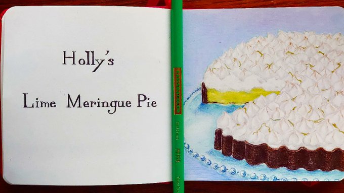 ホリーの「ライムメレンゲパイ🍋」 ショーストッパーチャレンジは「メレンゲパイ🥧」 生地の上にカスタードかフルーツフィリング、メレンゲが載ったパイを3時間半で作るのが課題です✨ #ブリティッシュベイクオフ #TheGreatBritishBakeOff #season2 #色鉛筆 #イラスト #illustration #pie #パイ