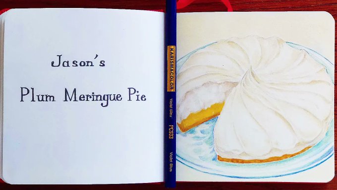 ジェイソンの「プラムのメレンゲパイ🥧」 プラムのフィリングに、ショウガ、シナモン、オレンジ風味の生地を合わせていました🍊✨ #ブリティッシュベイクオフ #TheGreatBritishBakeOff #season2 #色鉛筆 #イラスト #illustration #pie #パイ