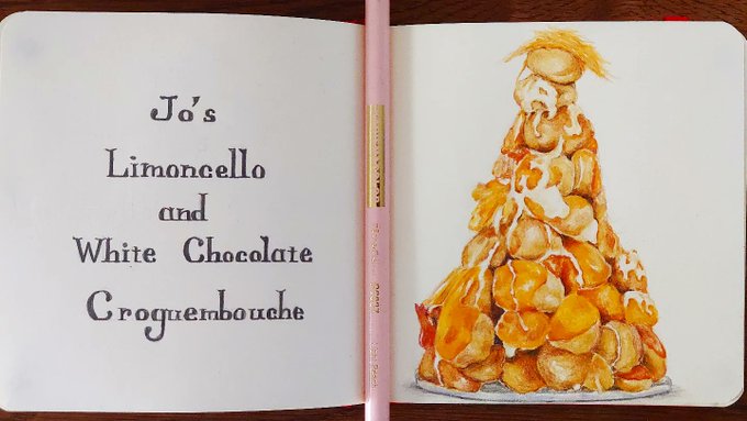 ジョーの「レモン&白チョコのクロカンブッシュ」 カスタードは生クリームとリモンチェッロとホワイトチョコ入りと言っていました🍋✨美味しそう💕 #ブリティッシュベイクオフ #TheGreatBritishBakeOff #season2 #色鉛筆 #イラスト #illustration #cheesecake #クロカンブッシュ #croquembouche