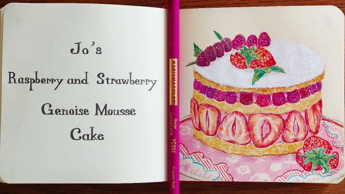 ジョーの「ラズベリーとストロベリーのムースケーキ🍓」 見た目も素敵✨✨ 準決勝の7週目はパティスリー対決でした! オリジナルチャレンジの課題はムースケーキ🧁💕 #ブリティッシュベイクオフ #TheGreatBritishBakeOff #season2 #色鉛筆 #イラスト #illustration #ムースケーキ #moussecake