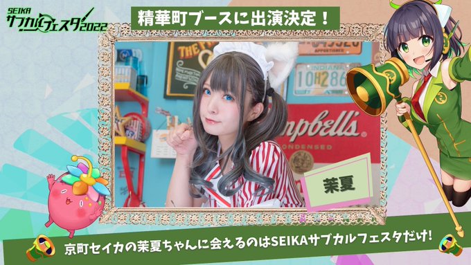 11/20 こちらの #SEIKAサブカルフェスタ2022 に出演させて頂きます! 当日は京町セイカちゃんのコスプレをしてフェスタを一緒に盛り上げていけるように頑張ります🎶 入場無料でステージや展示など盛りだくさんなイベントを楽しめるので、ぜひ遊びにいらして下さいね!💚 twitter.com/seika_subcul/s…