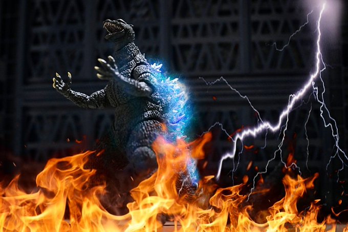 『跳びながら熱線を吐くゴジラ』 ゴジラvsヘドラでこんなシーンが見たかった #フィギュア撮影友の会 #夜のフィギュア撮影会 #ゴジラ #ヘドラ #ゴジラvsヘドラ #SHモンスターアーツ #SHMonsterArts