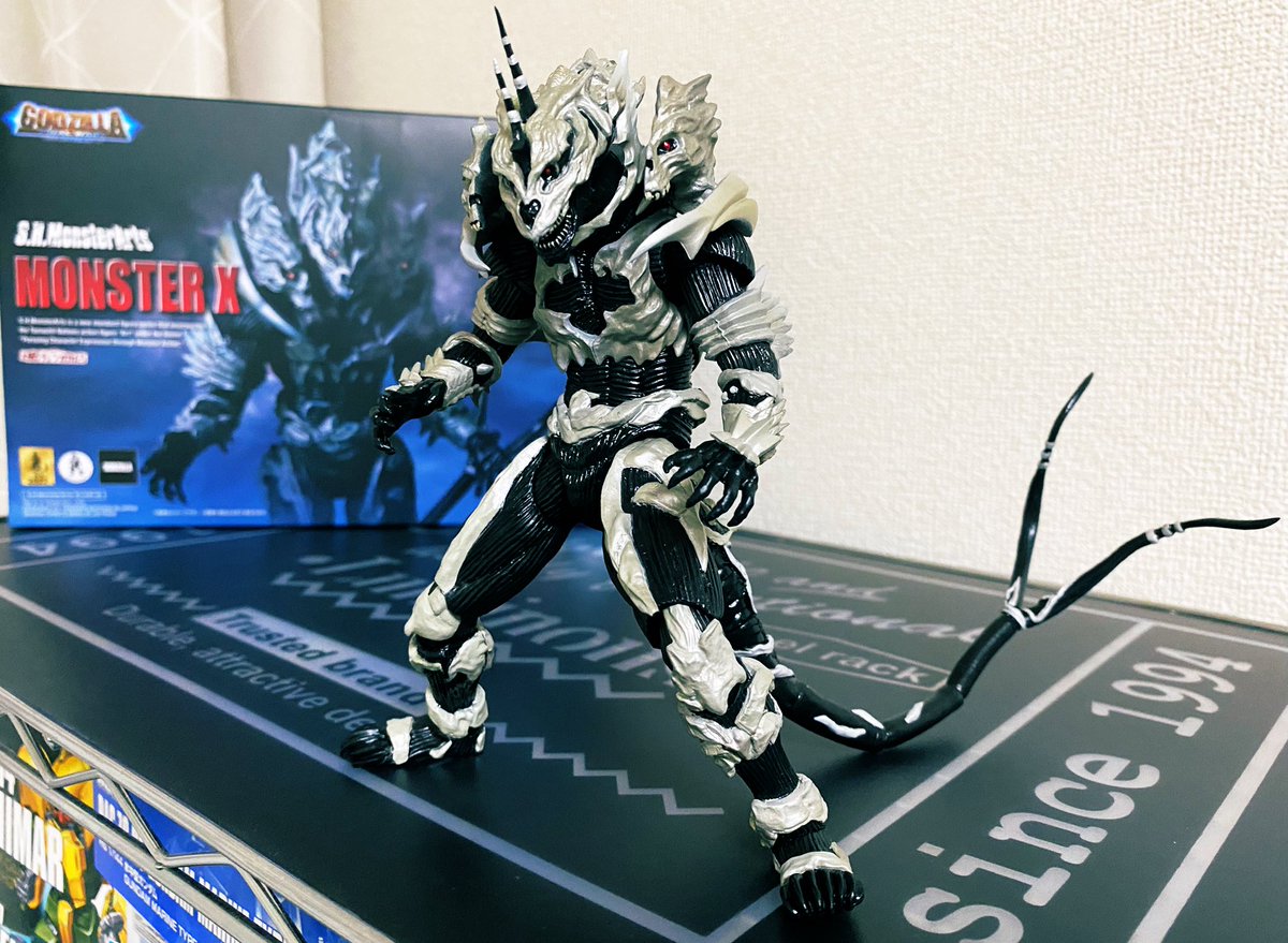 S.H.Monsterarts モンスターX X星人の最終兵器、妖星ゴラスから出でし災厄モンスターXがモンスターアーツに登場。元々アクションを重視したデザインがされた怪獣だったので、可動域は他の怪獣よりも広く、ポーズが決めやすいです。 #shモンスターアーツ #ゴジラ #オモ写