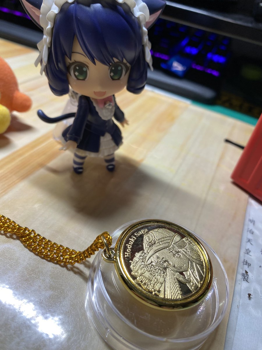 #深夜のねんどろ撮影60分一本勝負 5/13 お題【ぐっず】フライング 去年秋に行った旅行で買った『鉄道むすめ』のコインです。 嵯峨ほづきちゃんだそうです。 #ShowByRock #鉄道むすめ