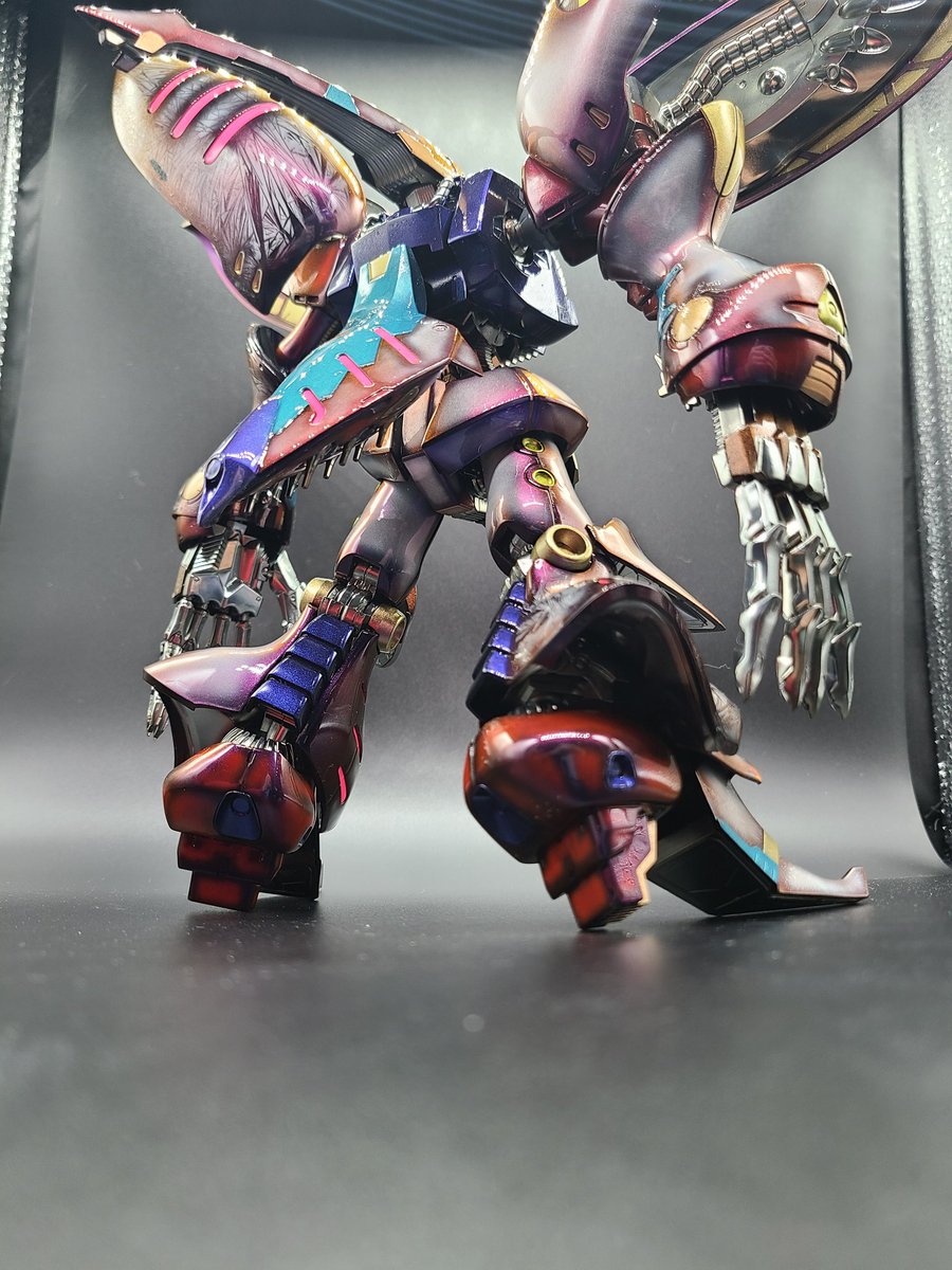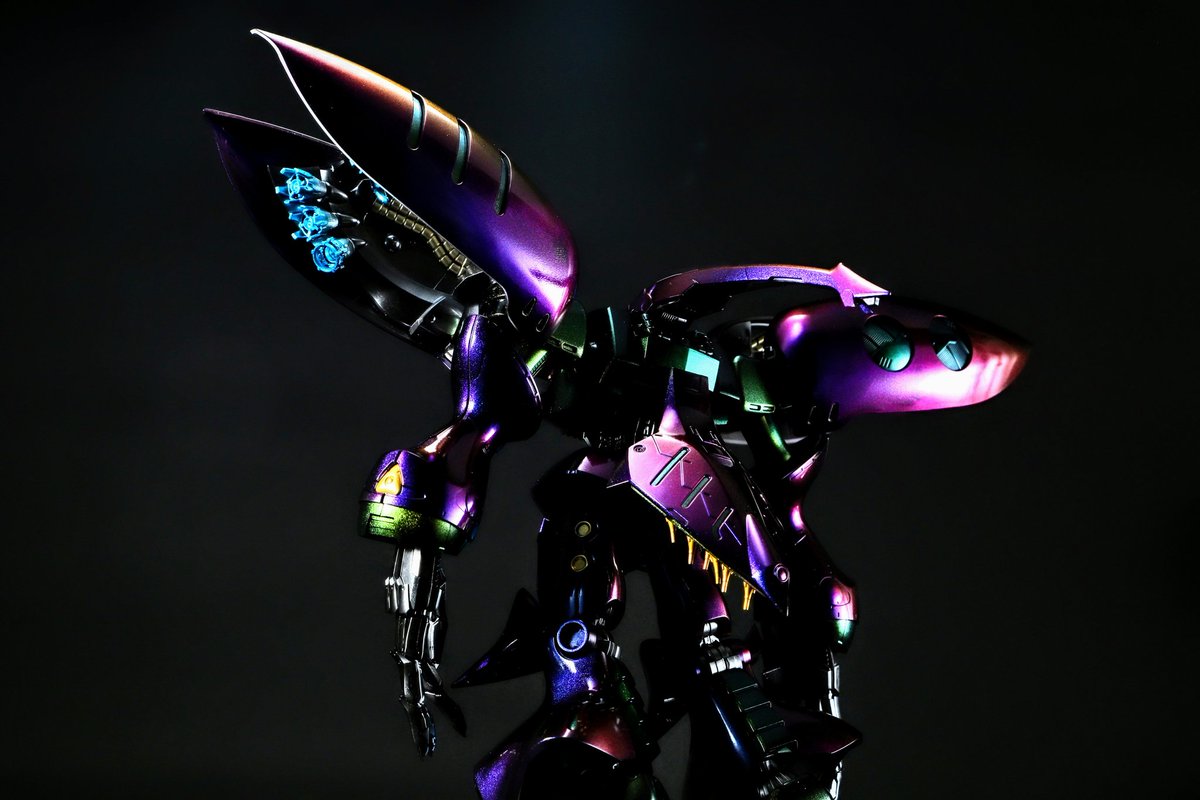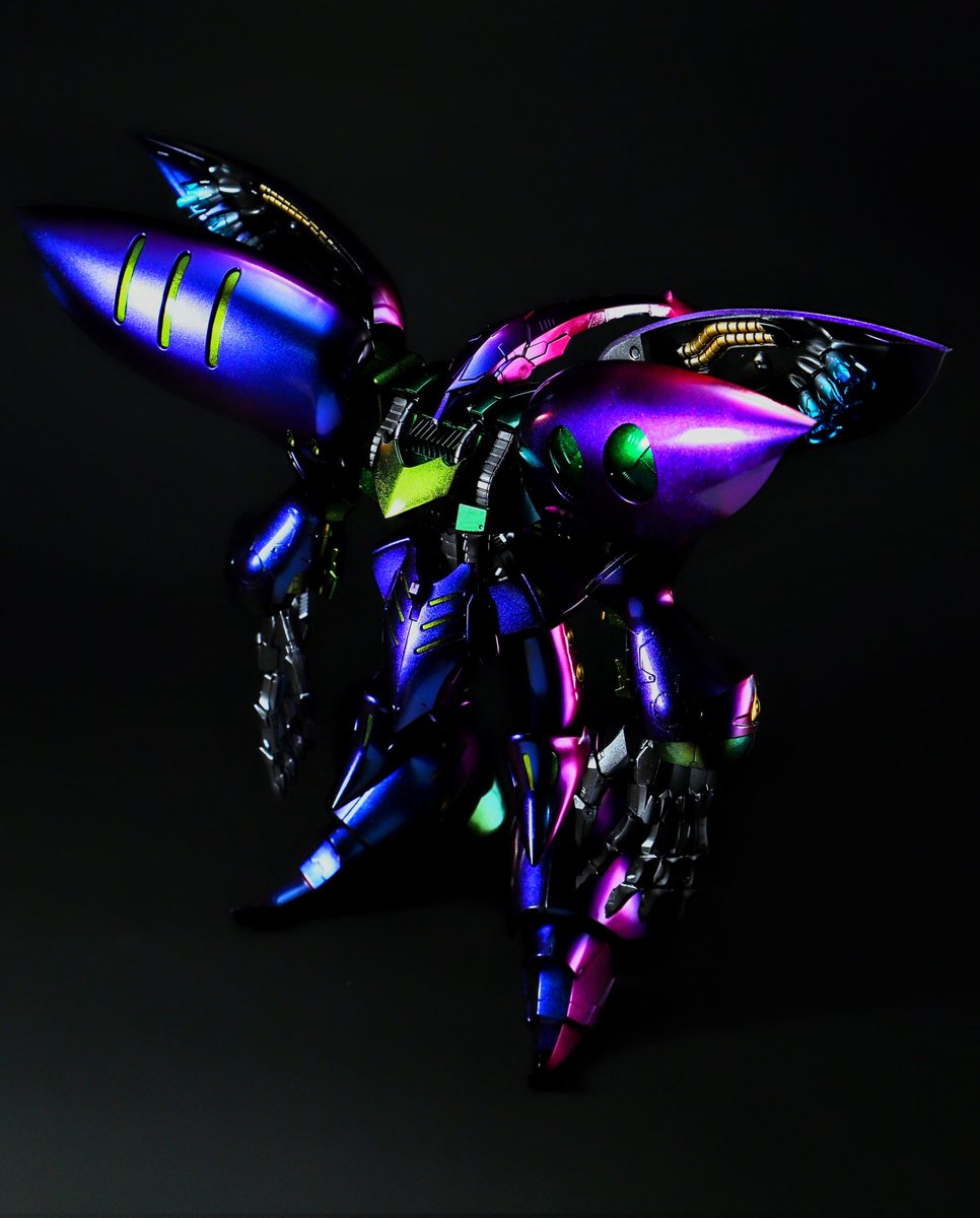 去年から放置してた久々の完成品❗ #キュベレイアンベリール 片足片腕に #showup さんの #レクトラフィニッシュ を施しシャドウを残し全体的に #マジョーラ を吹き付けウレタンフィニッシュしました😁 #ガンプラの画像貼るとRTされると聞いて #gunpla